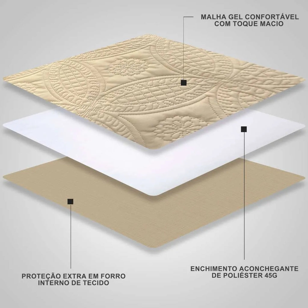 - Tecido Externo: Malha Gel Matelada 100% Poliéster