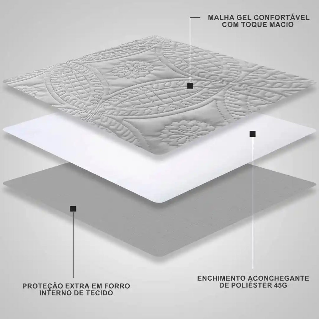 - Tecido Externo: Malha Gel Matelada 100% Poliéster