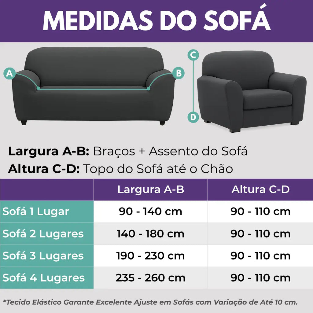 - capa de sofá 4 Lugares: Largura 235 à 260 cm e Altura (90 à 110cm)