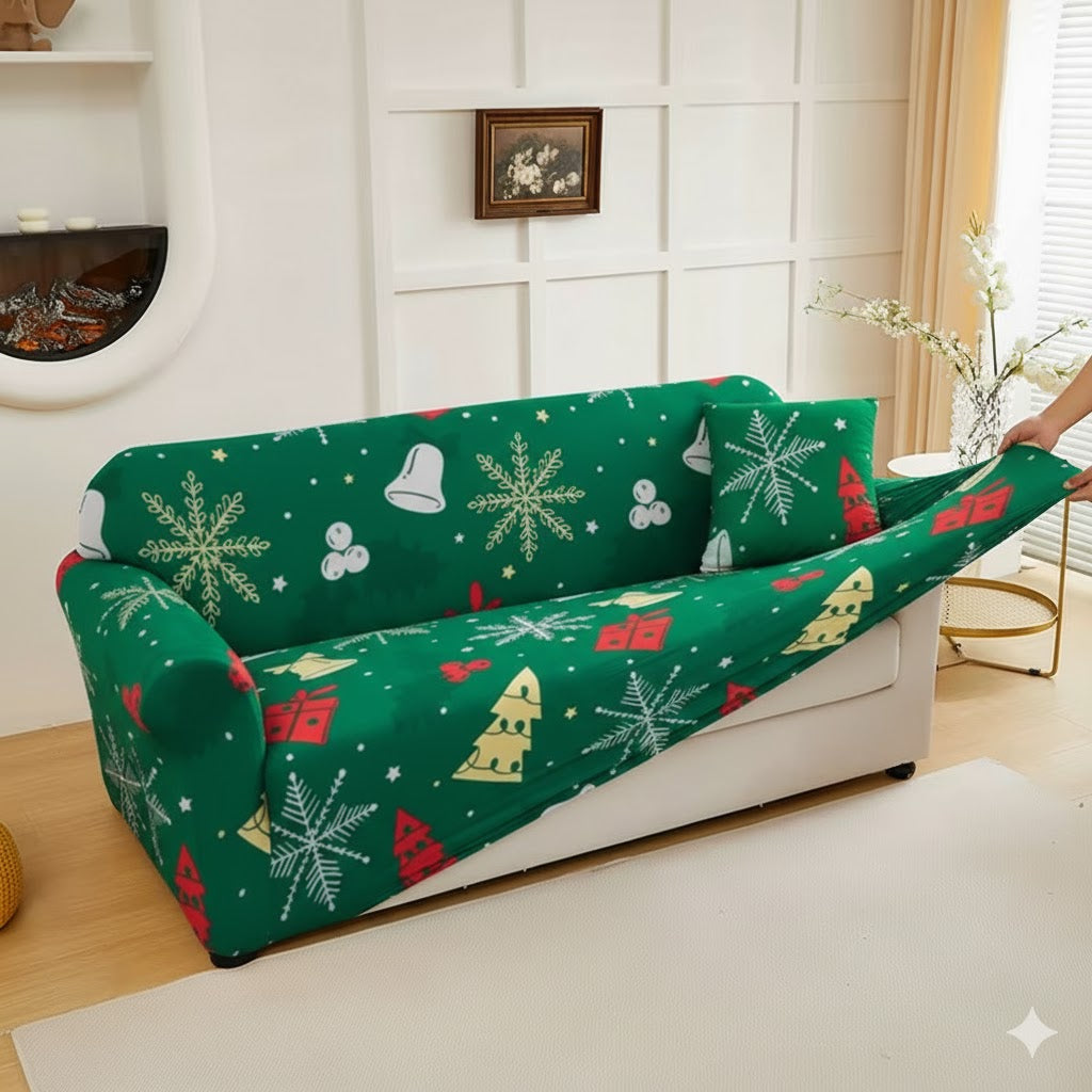 Encante sua casa neste Natal com a Capa de Sofá Natalina Spandex Special – Pinheiro Encantado, que une beleza, praticidade e alta qualidade em um só produto!