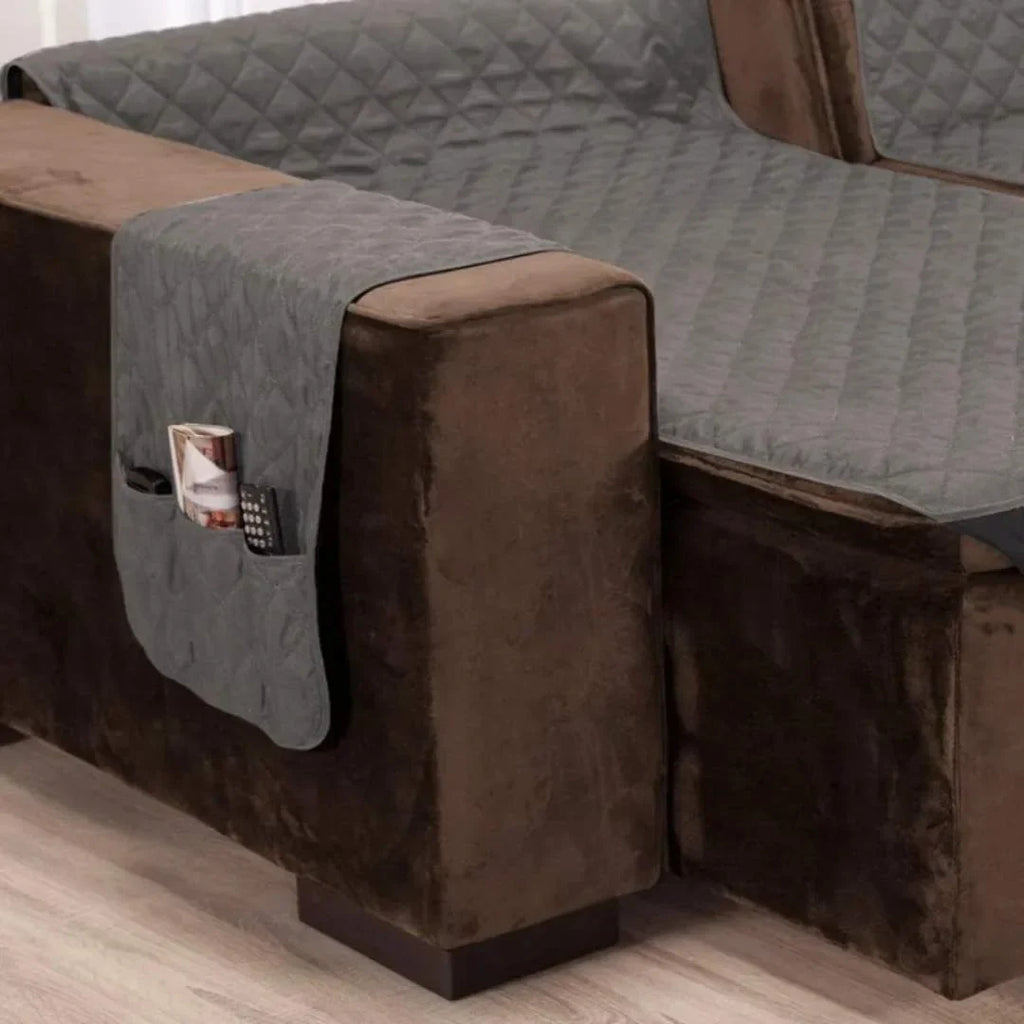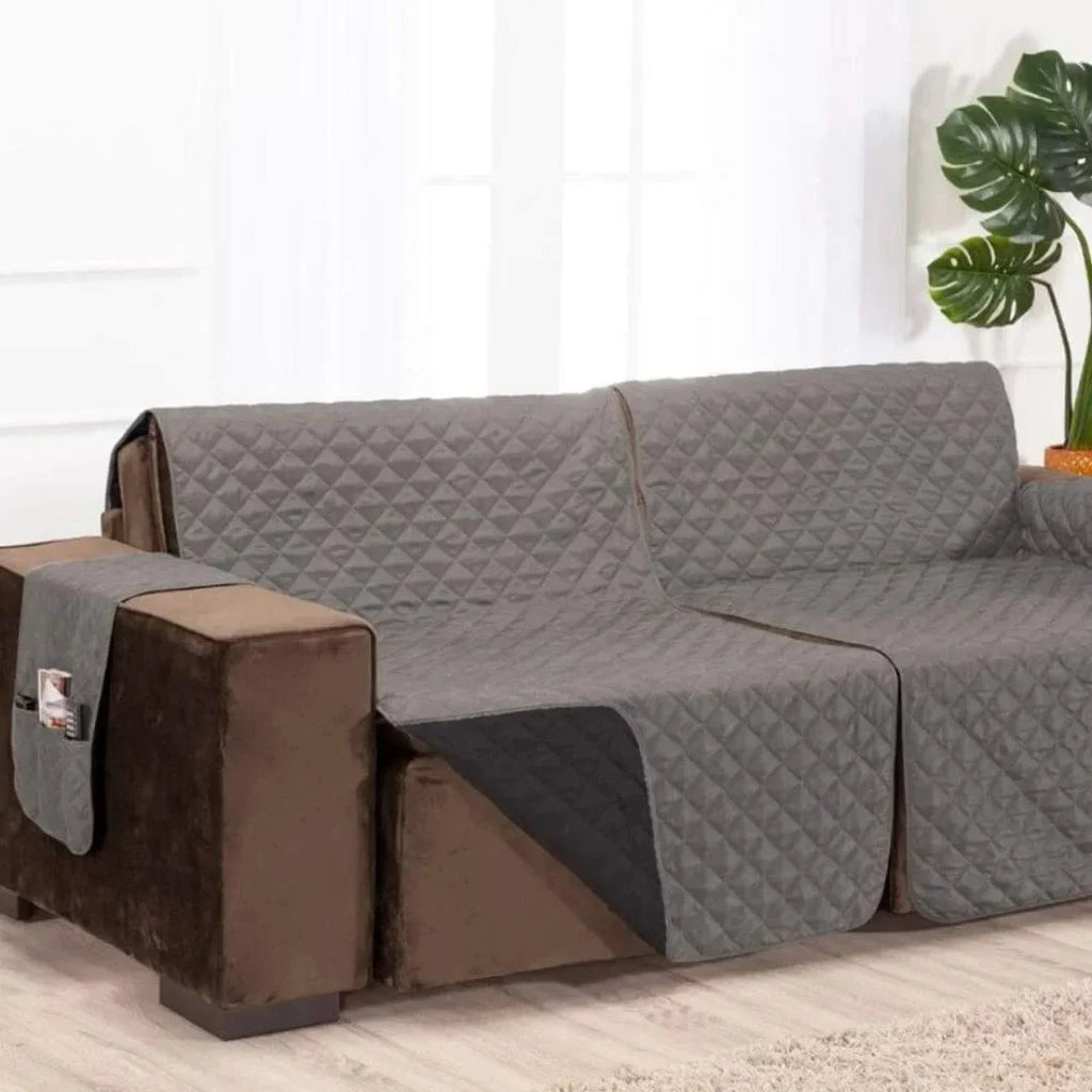 Protetor Sofá Retrátil Impermeável Dupla Face Cinza-Preto