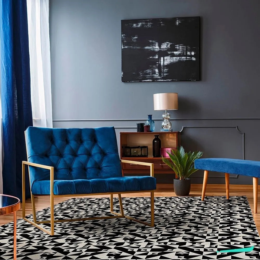Modelo de Tapete Geométrico Inspirado nos melhores padrões de Cores e Estampas mais Modernos da atualidade. O Tapete para sala e Quartos da Charme enriquece a Decoração do seu ambiente de forma Impressionante.